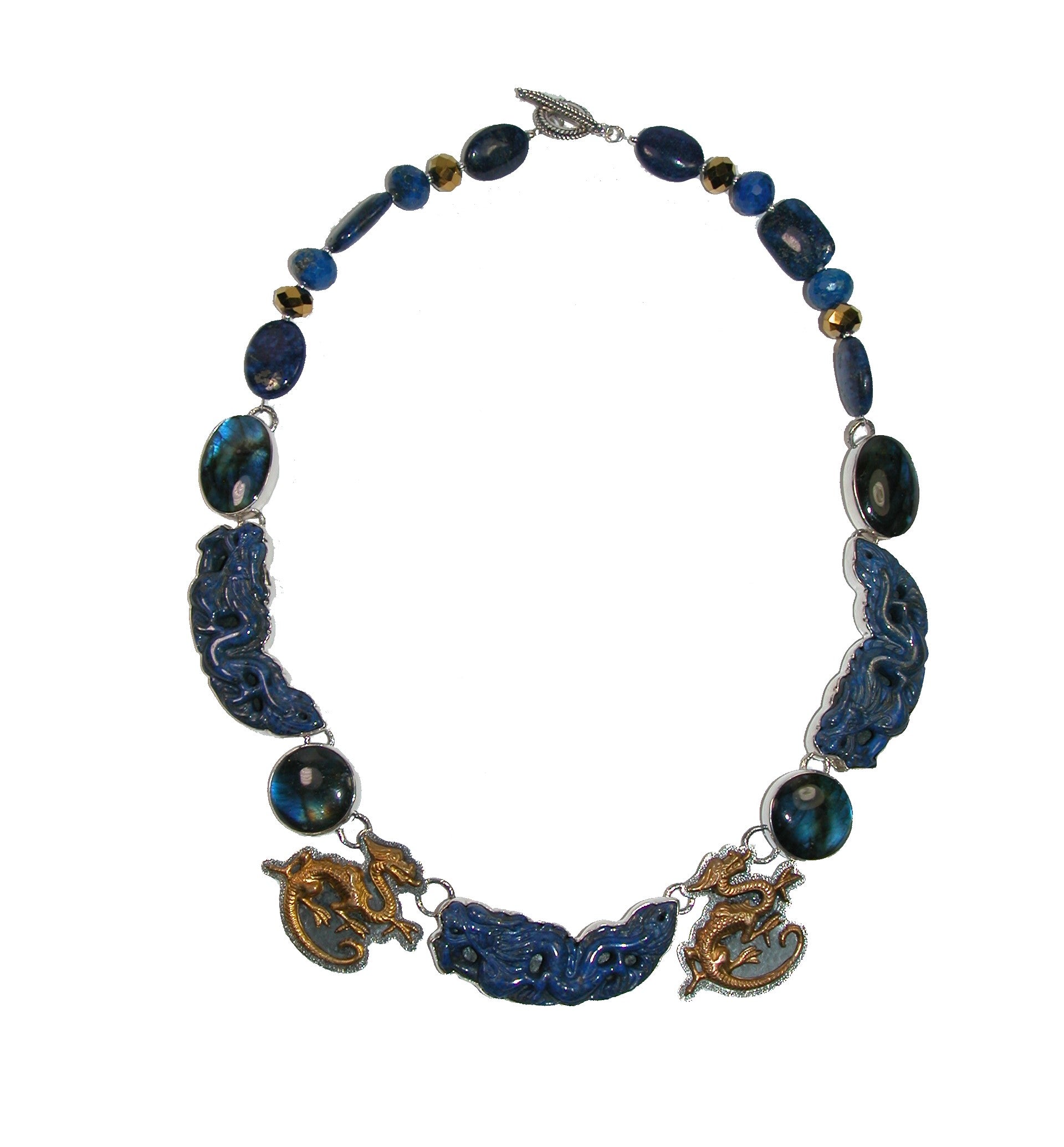 20714 Carved Blue Dragon Labradorite Sterling Silver Necklace