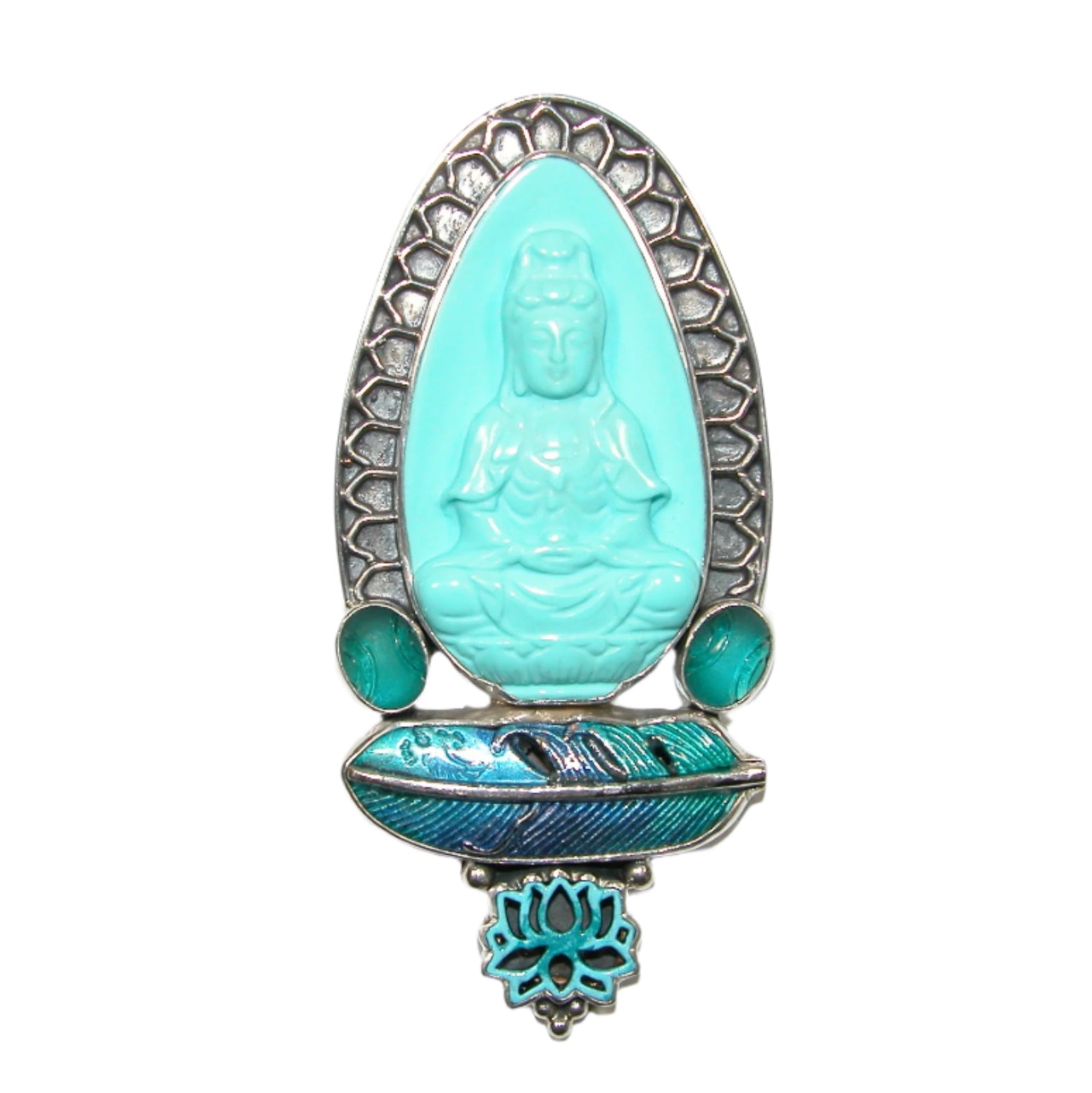 32786 Turquoise Carved Buddha, Celestial Quartz, Enamel Sterling Silver Pin and Pendant
