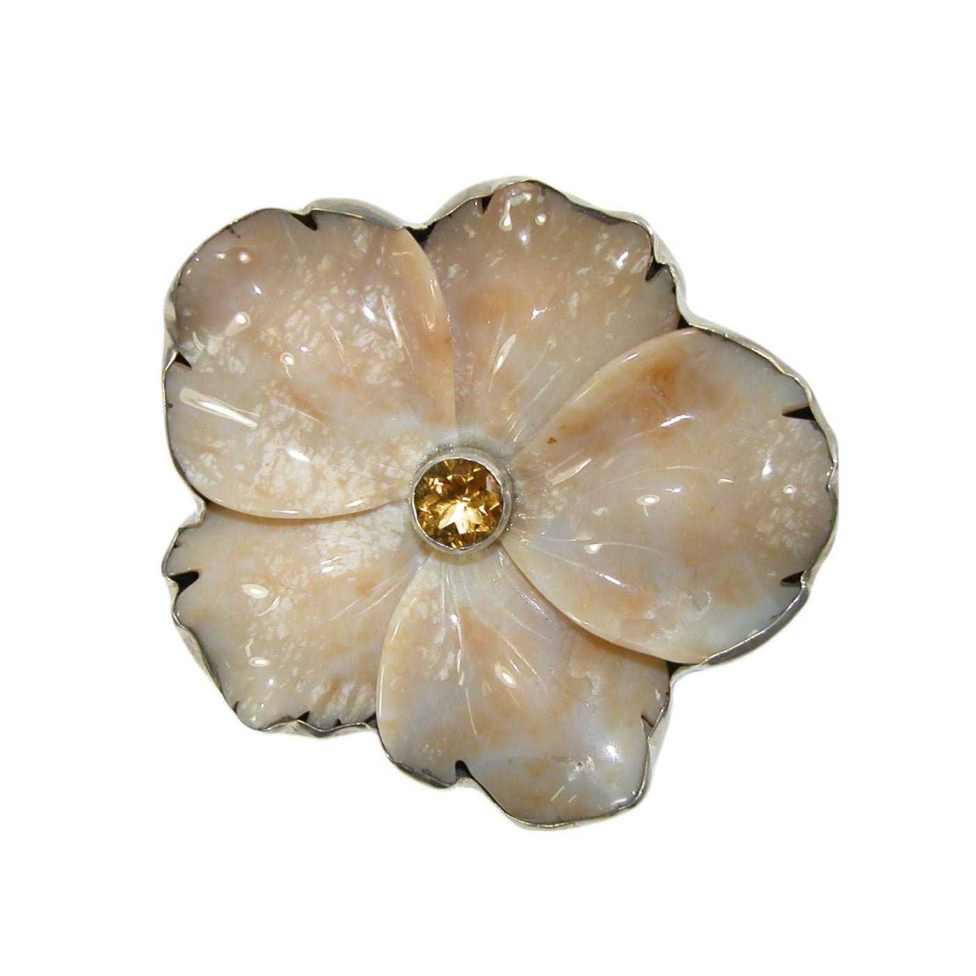 4001 Carved Flower Citrine Sterling Silver Pin and Pendant