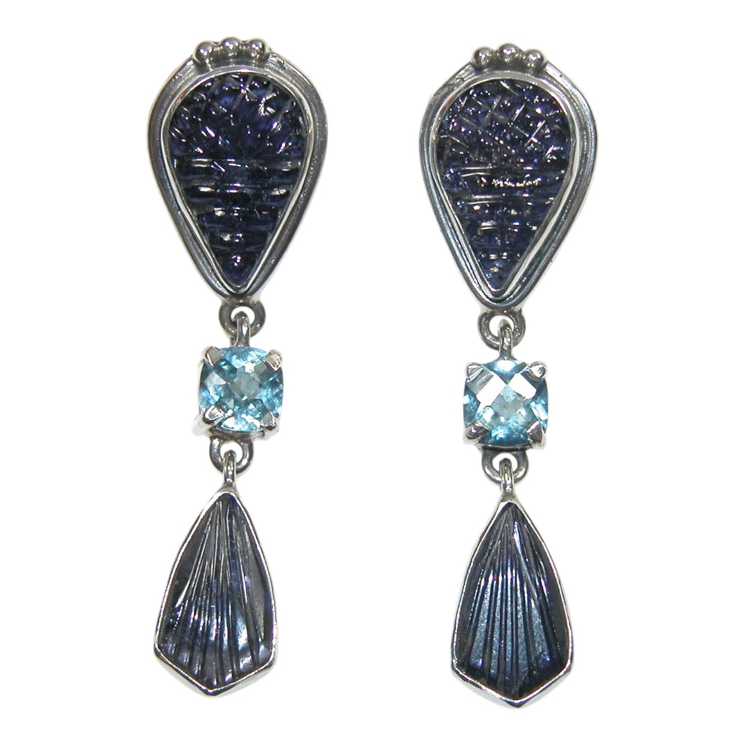 33865 Carved Iolite Blue Topaz Sterling Silver Earrings