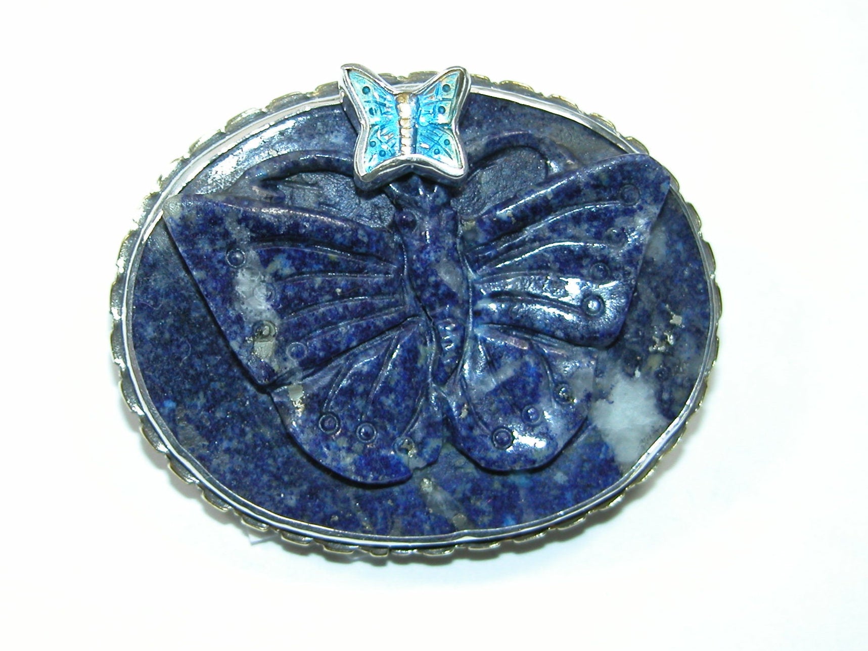 33177 Carved Lapis Lazuli Butterfly Sterling Silver Pin Pendant