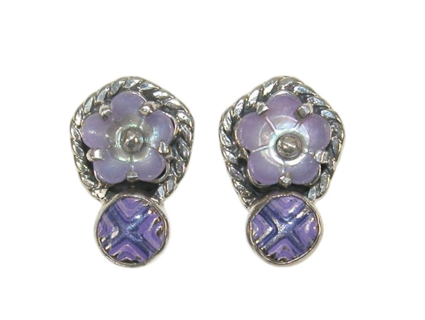 32179 Carved Mother of Pearl Flower Enamel Sterling Earring