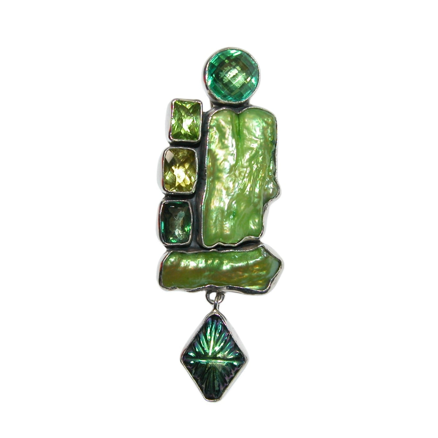 Green Mother of Pearl Sterling Silver Pin and Pendant