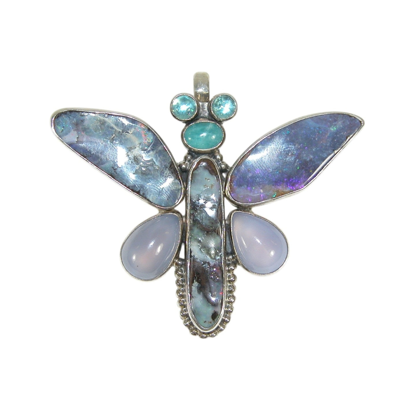 Quartz, Chalcedony, Amazonite, Boulder Opal Dragonfly Sterling Silver Pin and Pendant