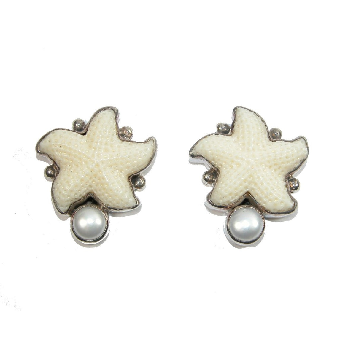 18678 Carved Starfish Freshwater Pearl Sterling Silver Earrings