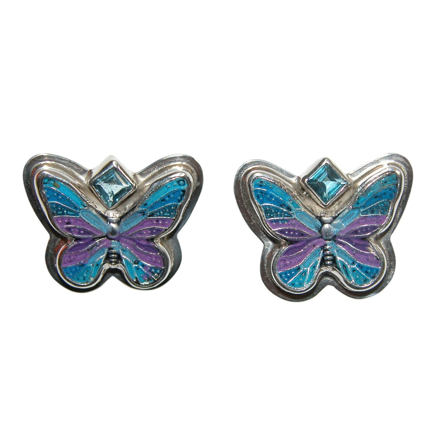 34036 Hand Enamel Butterfly Sterling Silver Earrings