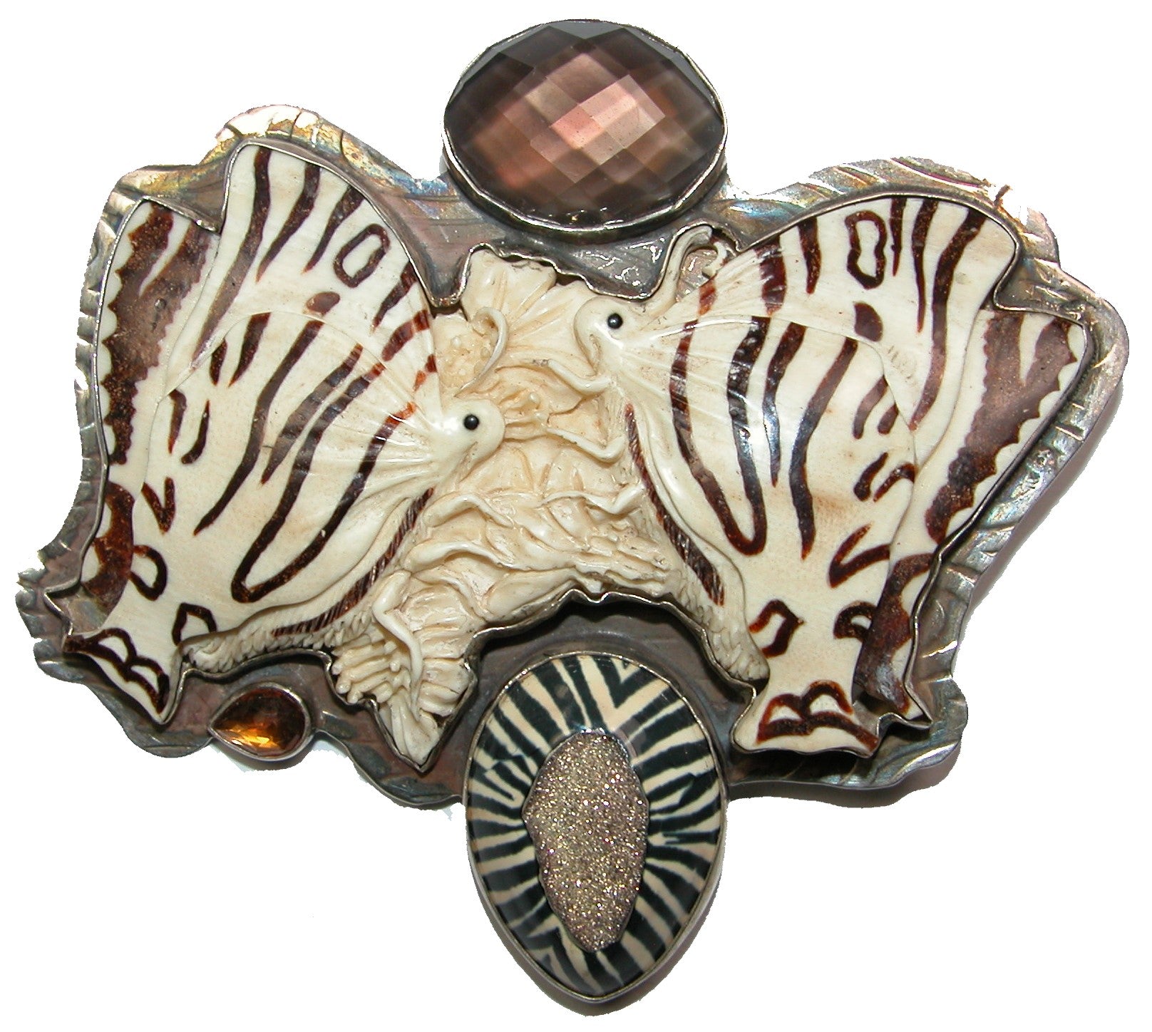 8736 Carved Butterfly Sterling Silver Pin and Pendant