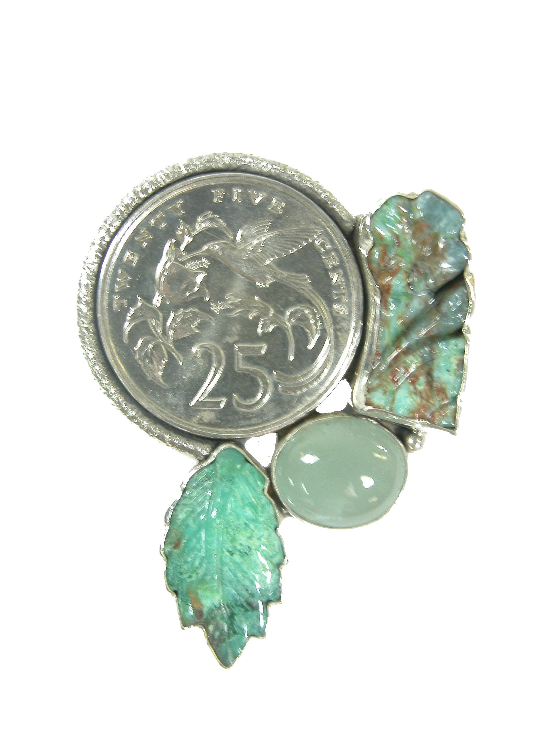 31543 Coin with Pyrite and Amazonite Sterling Silver Pin Pendant