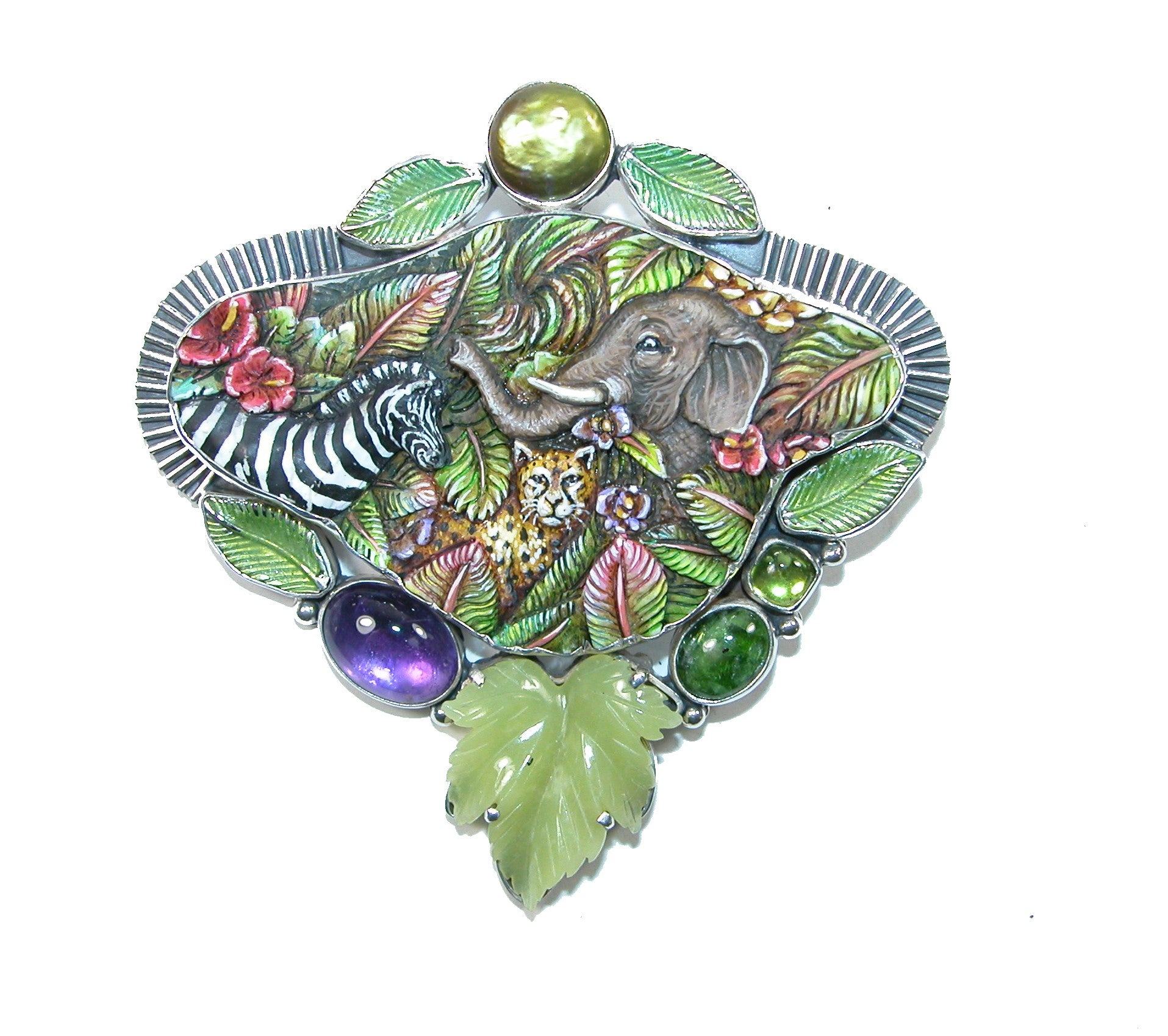 Collectible Zebra Coin, Freshwater Pearl, Black Onyx Sterling Silver Pin and Pendant (Copy)