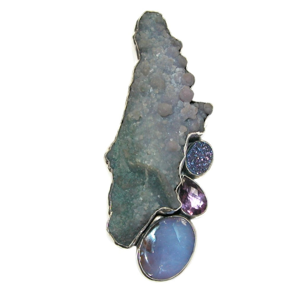 Collectors Grape Agate, Boulder Opal, Brazilian Agate, Drusy with Titanium, Amethyst Pin and Pendant