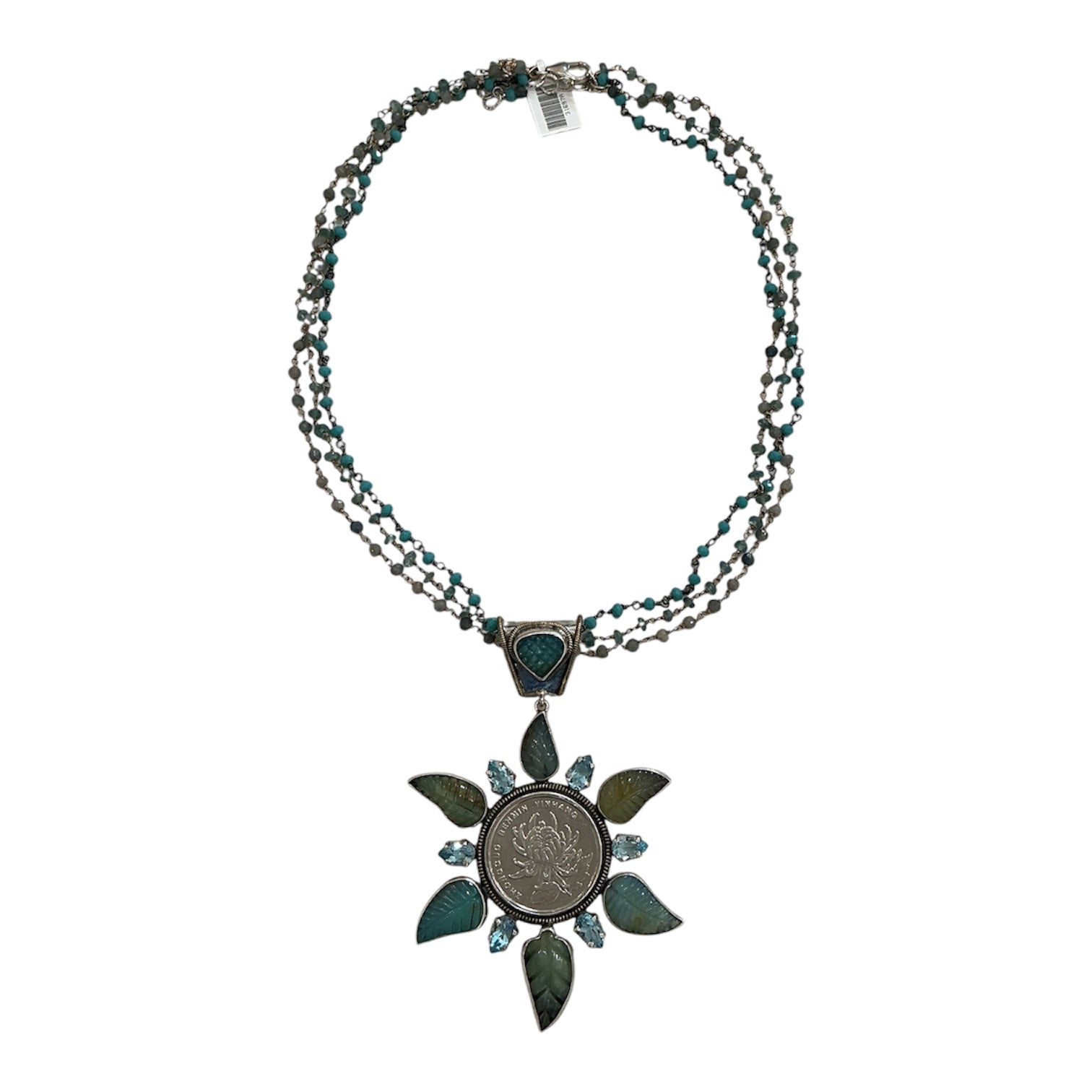 31697A Blue Topaz Lotus Coin Sterling Silver Necklace