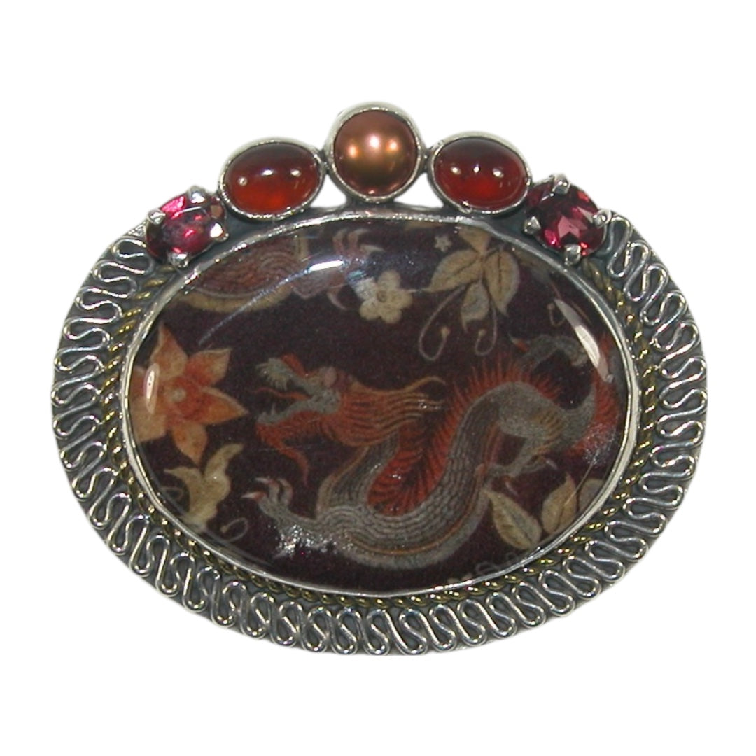 32931 Hand Painted Miniature, Freshwater Pearl, Garnet Sterling Silver Pin Pendant