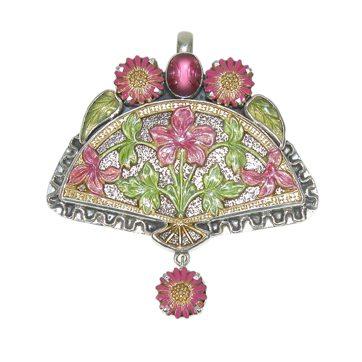 32933 Flower Hand Enamel Fan Sterling Silver Pin and Pendant