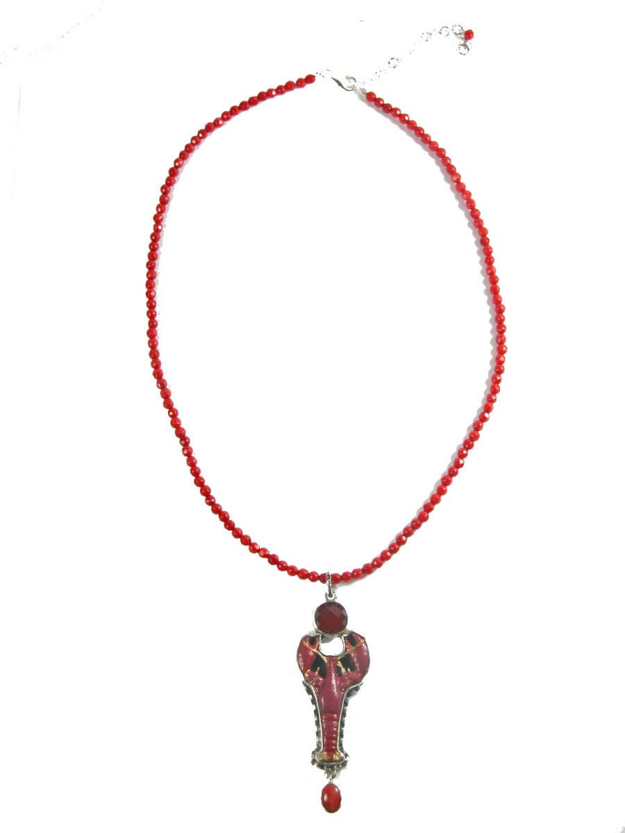 31318 Coral Red Enamel Lobster Sterling Silver Pendant Necklace