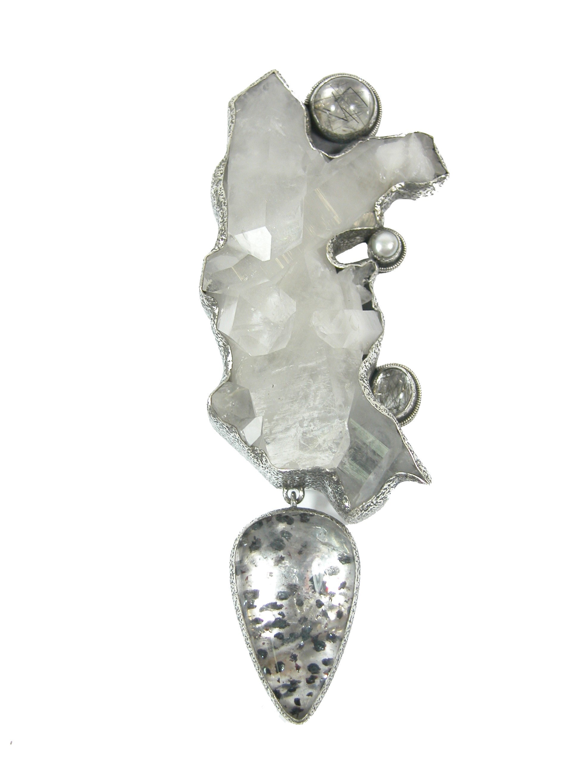 Crystal with Tourmalated Quartz Dendritic Agate Pin and Pendant