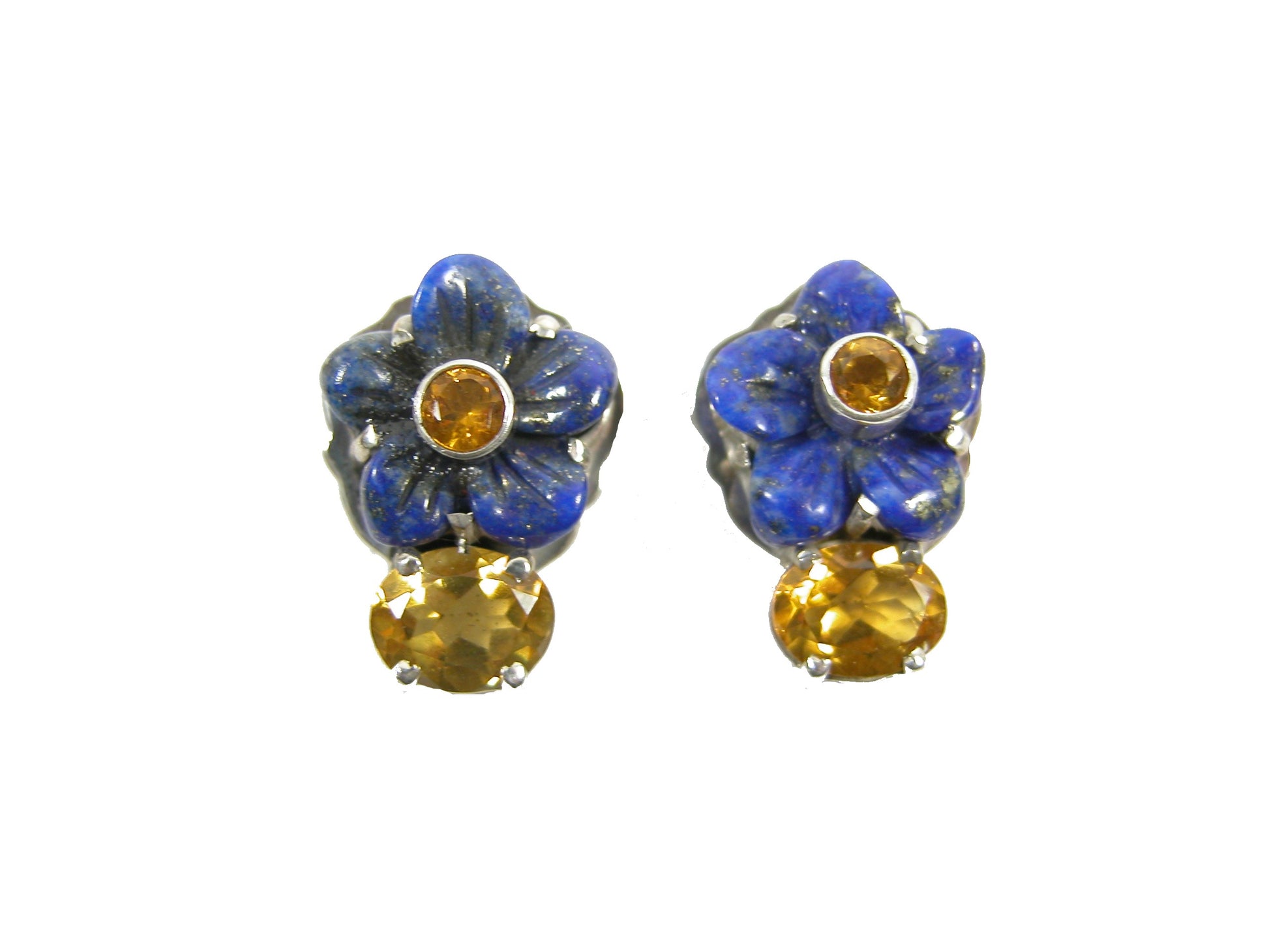 20641 Hand Carved Lapis, Citrine Sterling Silver Earrings