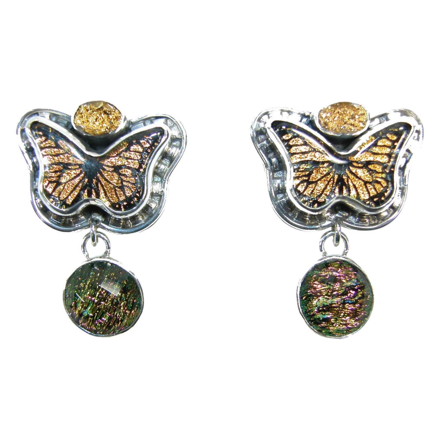22811 Dichroic Glass and Gold Drusy on Sterling Silver Earrings