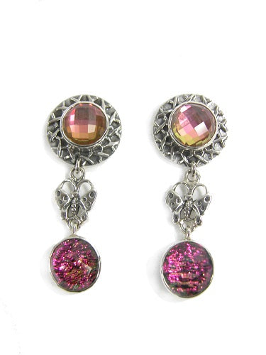 22675 Dichroic Glass and Quartz on Sterling Silver Earring