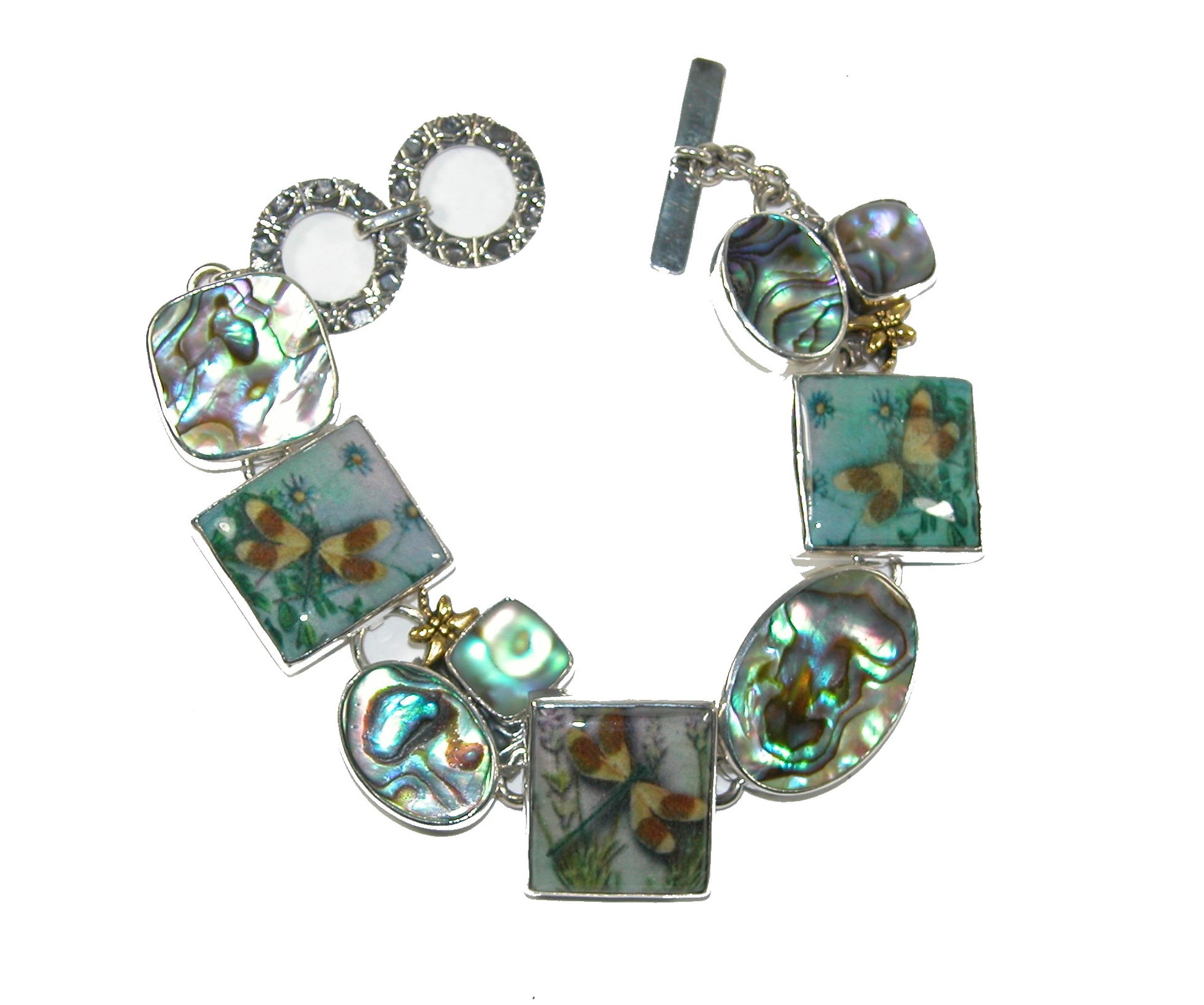 29937 Dragonfly Enamel Tile Abalone Sterling Silver Bracelet