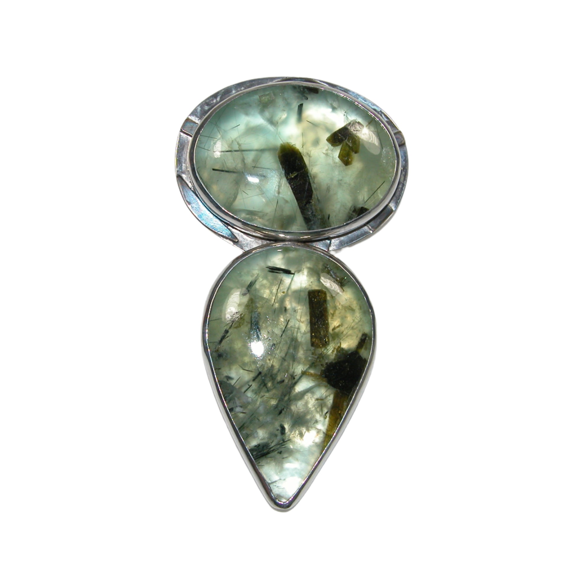 Two Stone Green Pyrite Sterling Silver Pin and Pendant