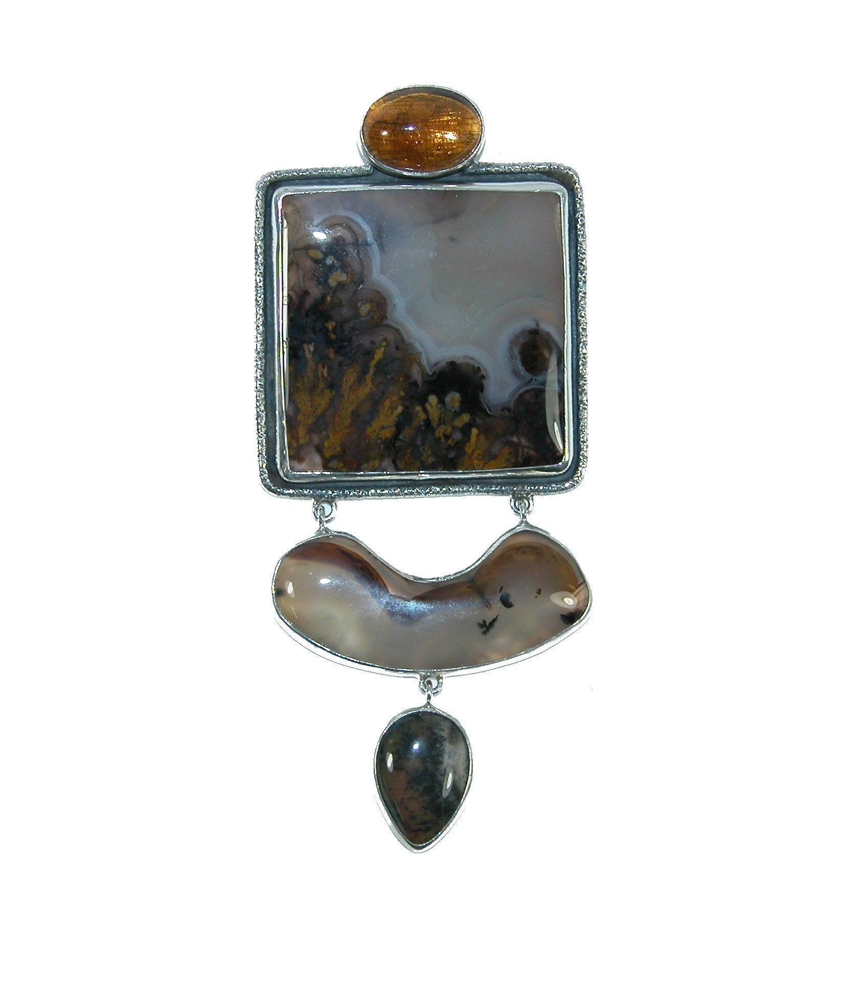Drusy, Crab Hand Enameled Butterfly Sterling Silver Pin and Pendant