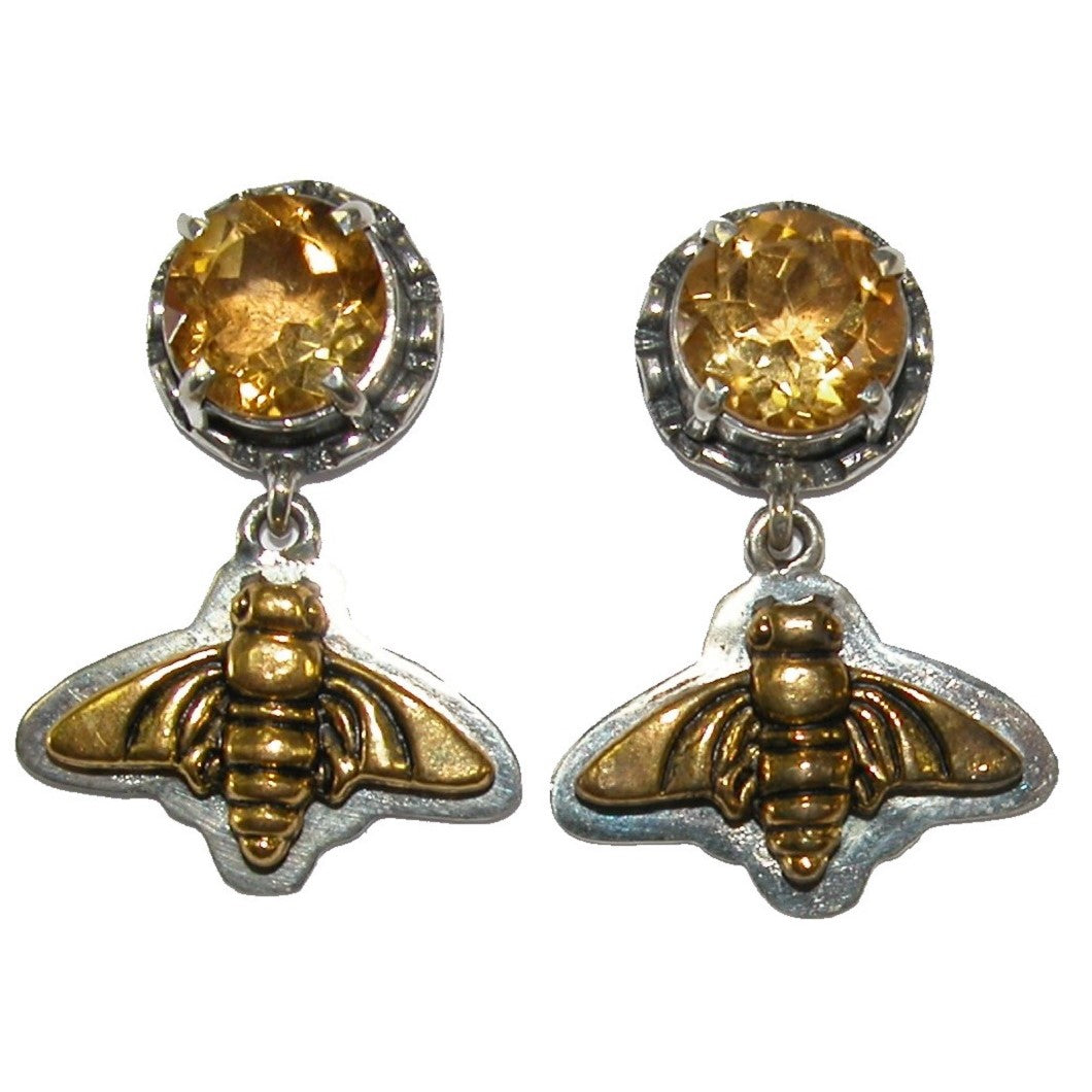 19045 Citrine Bee Dangling Sterling Silver Earrings