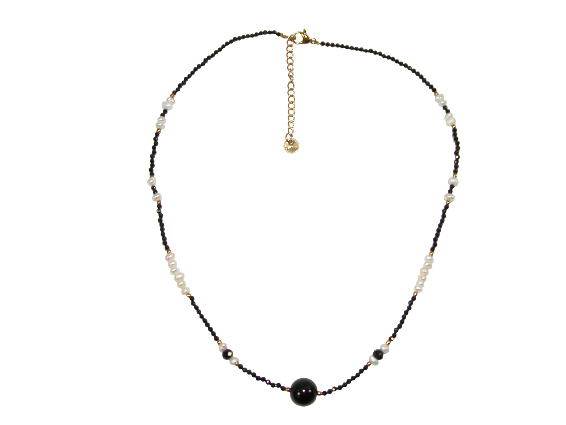 Faceted Black Bead Pearl Gold Bead Choker Necklace GF3613