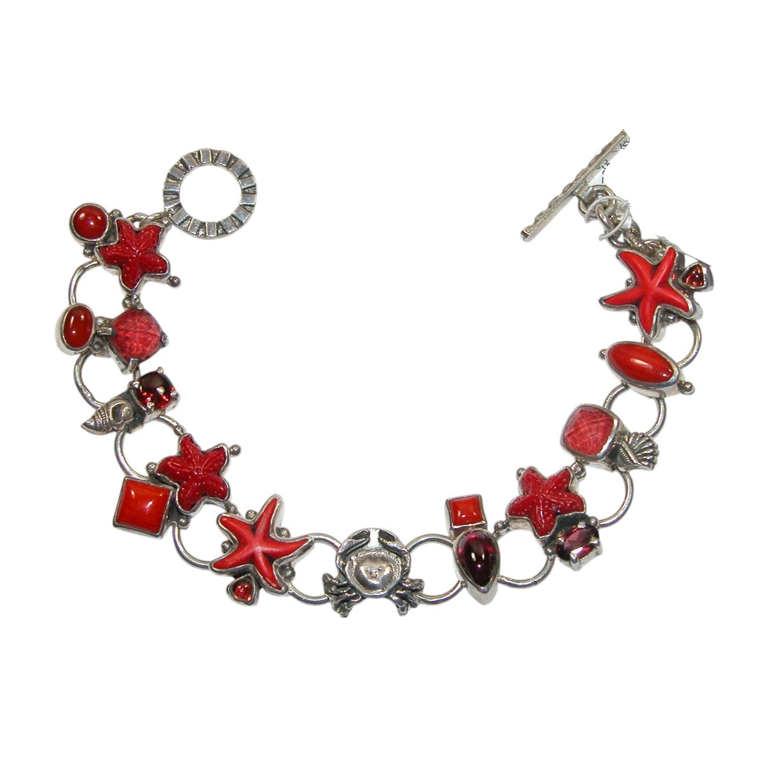 Garnet, Coral, Quartz Sea Life Sterling Silver Bracelet