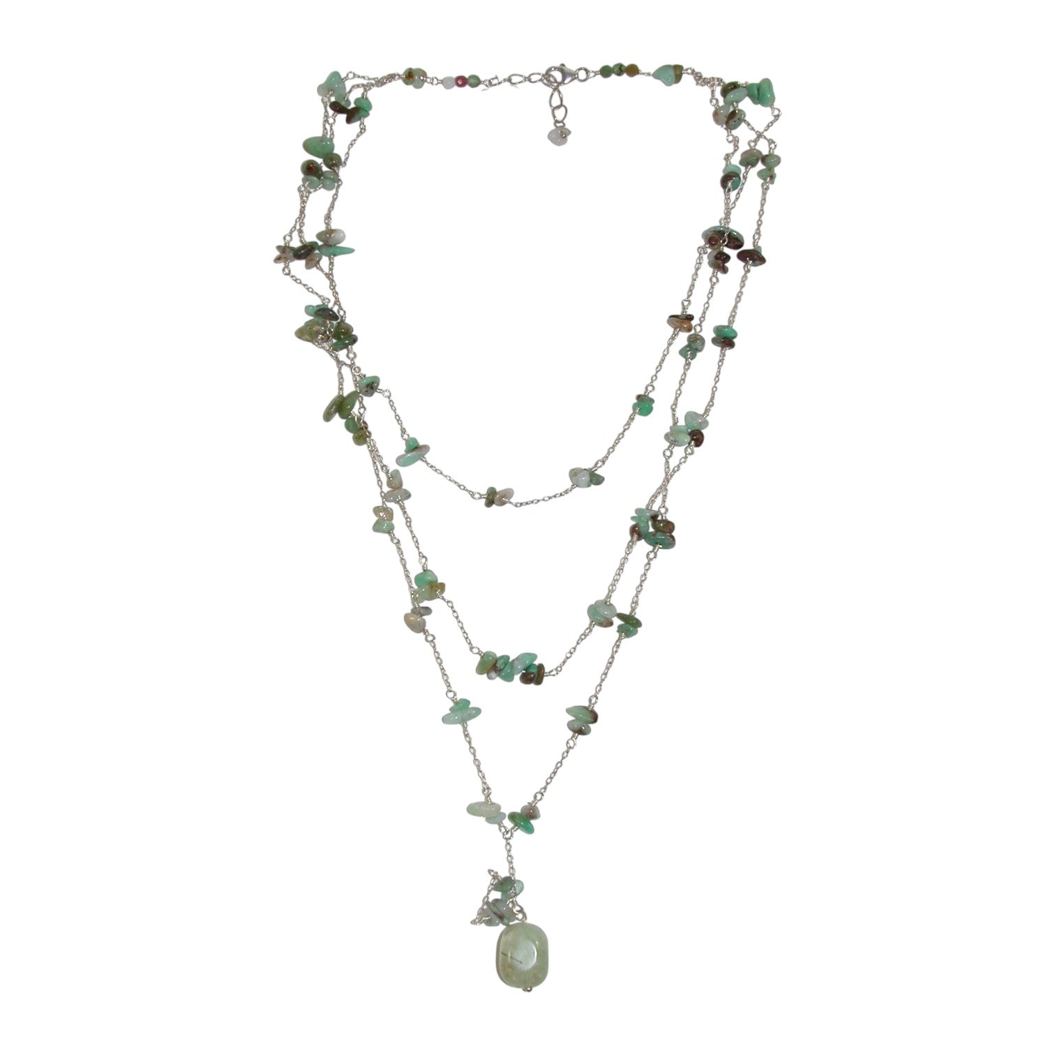 N5258 Chrysoprase, Prehnite Beaded Sterling Silver Necklace