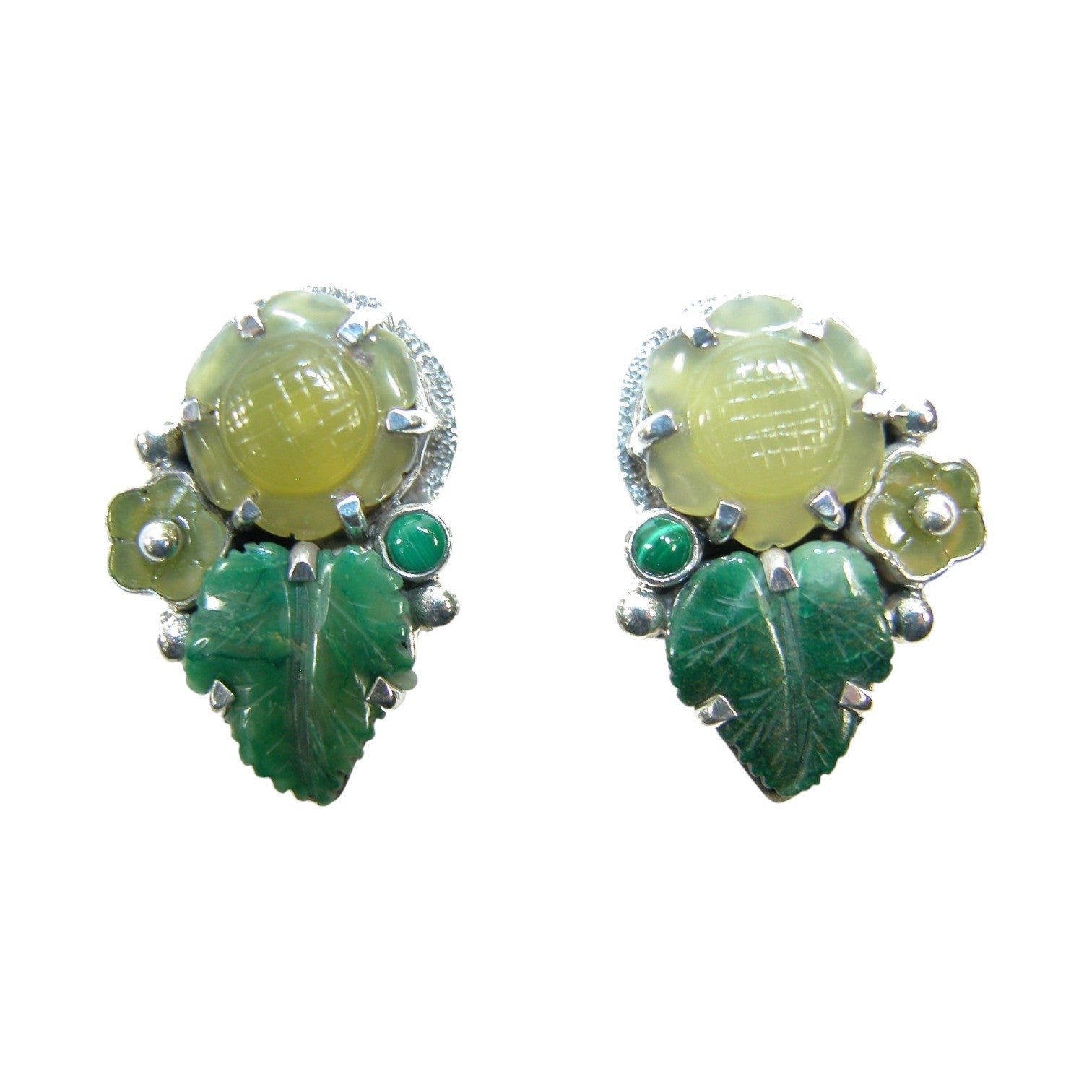 22823 Green Freshwater Pearl Cluster Sterling Silver Earrings