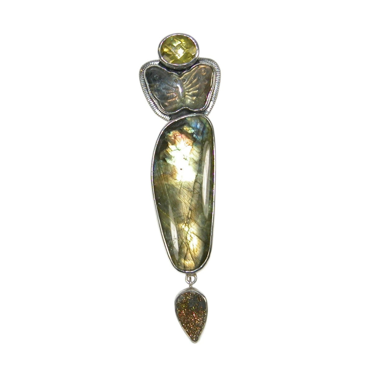 Labradorite Butterfly Drusy Sterling Silver Pin and Pendant