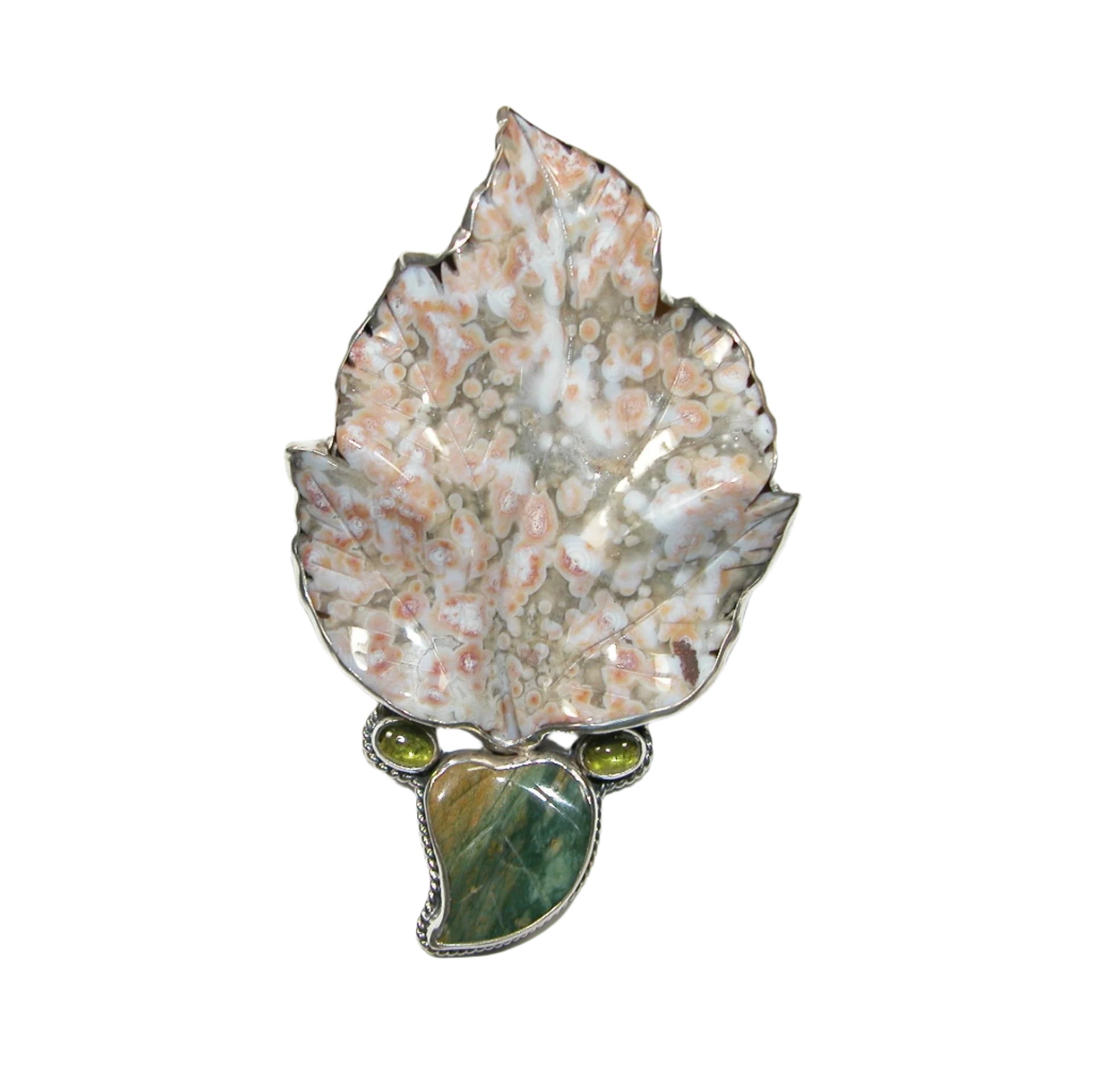 32965 Hand Carved Jasper, Vesuvinite Leaf Sterling Silver Pin Pendant