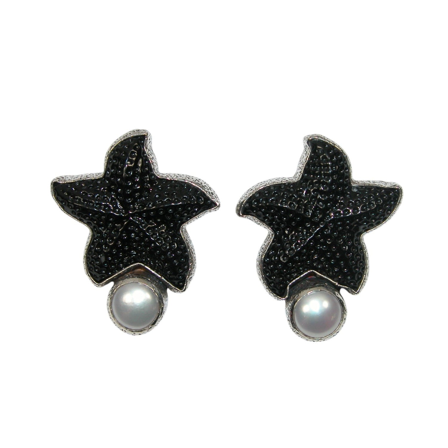 34050 Carved Starfish Freshwater Pearl Sterling Silver Earrings