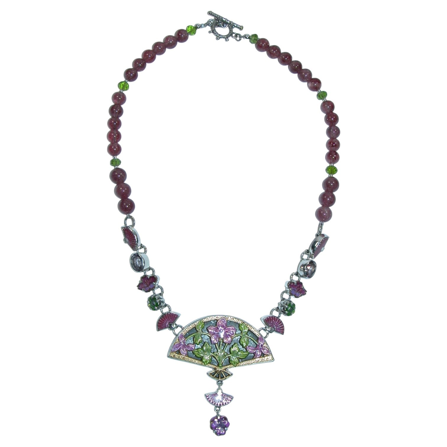 32353 Hand Enameled Floral Beaded Sterling Silver Necklace