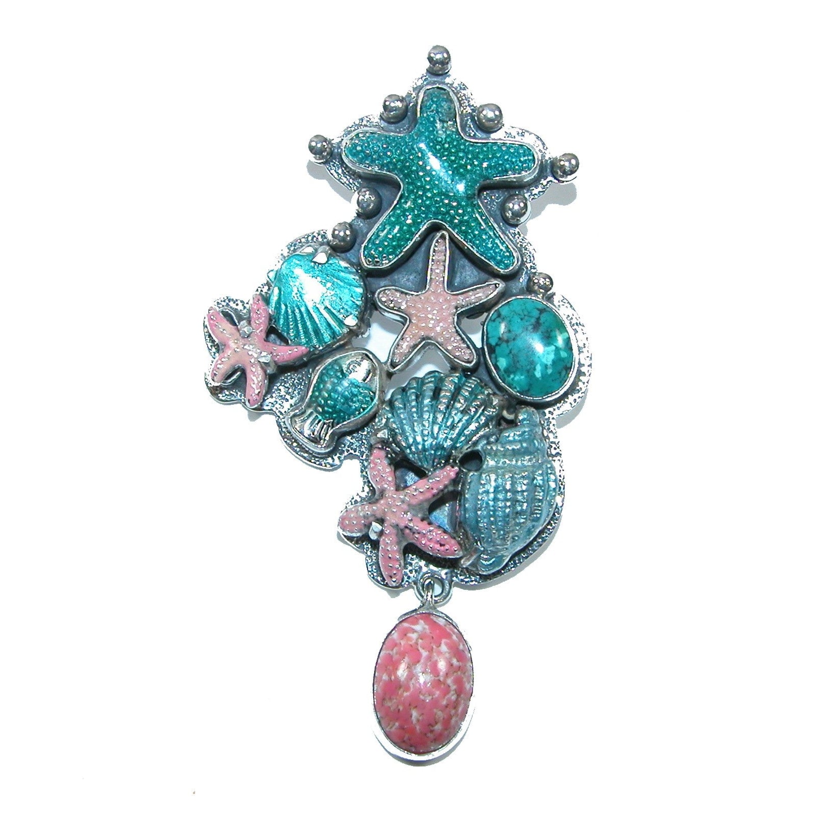 31992 Hand Enamel, Turquoise, Sealife Sterling Silver Pin and Pendant