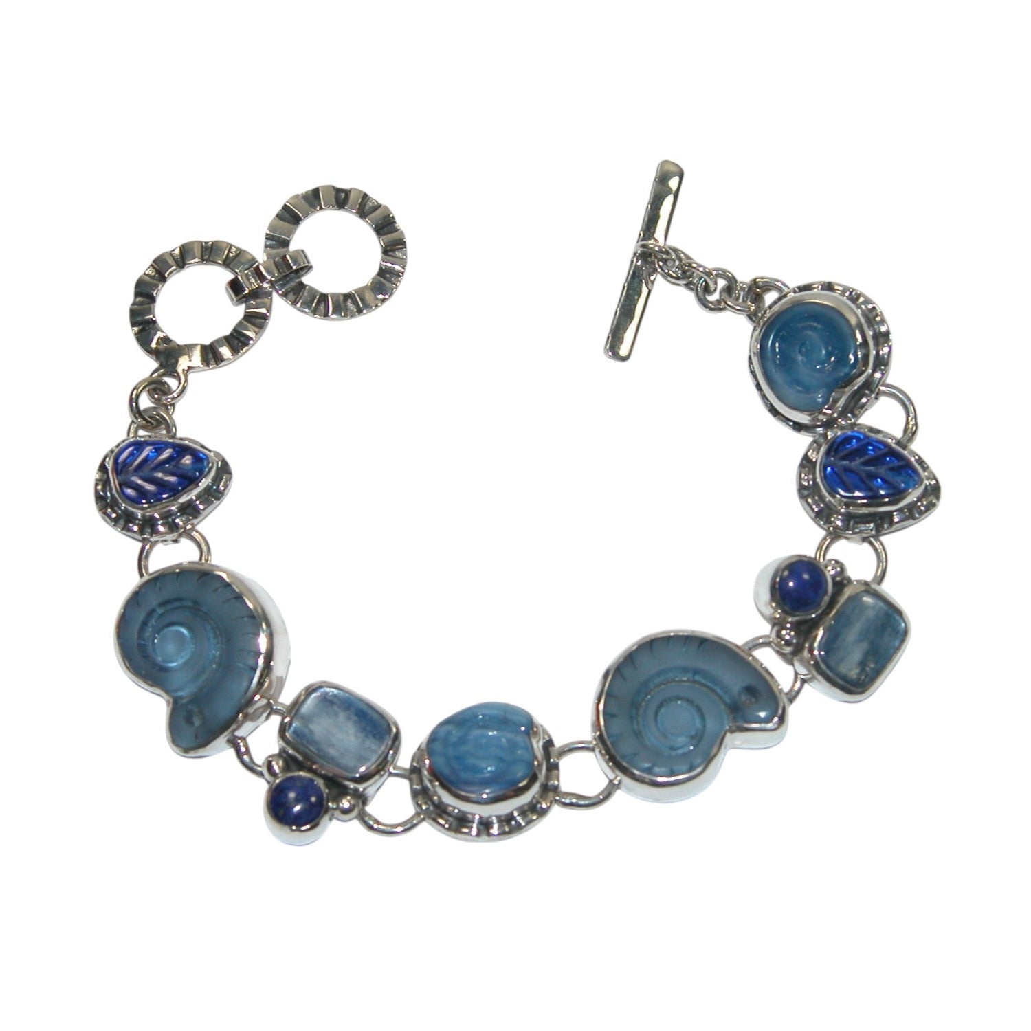 34032 Carved Blue Shell Blue Lapis Sterling Silver Bracelet