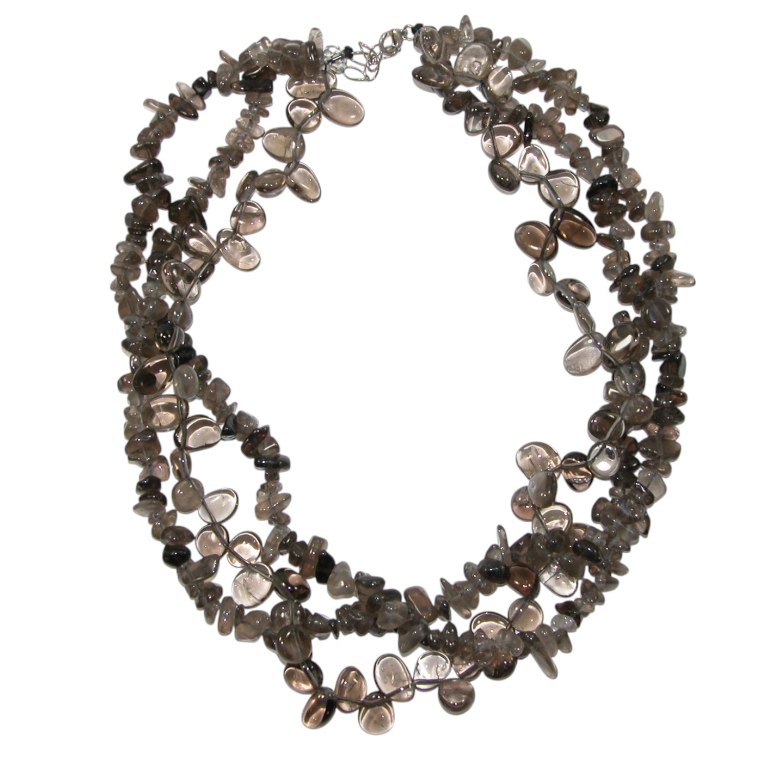 N30378 Quartz Three Strand Sterling Silver Beaded Necklace