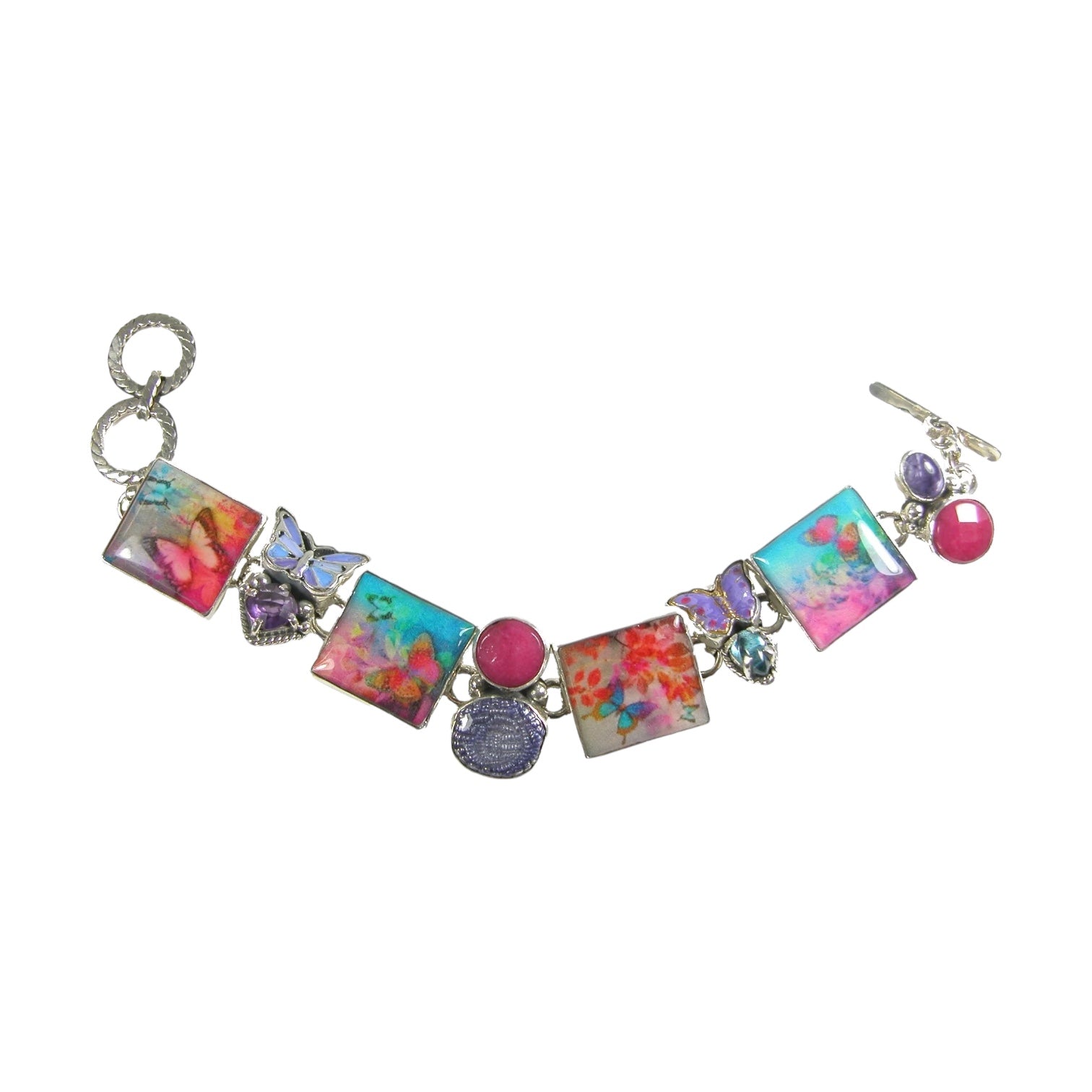 Handmade Butterfly Tile Amethyst Apatite Sterling Silver Bracelet