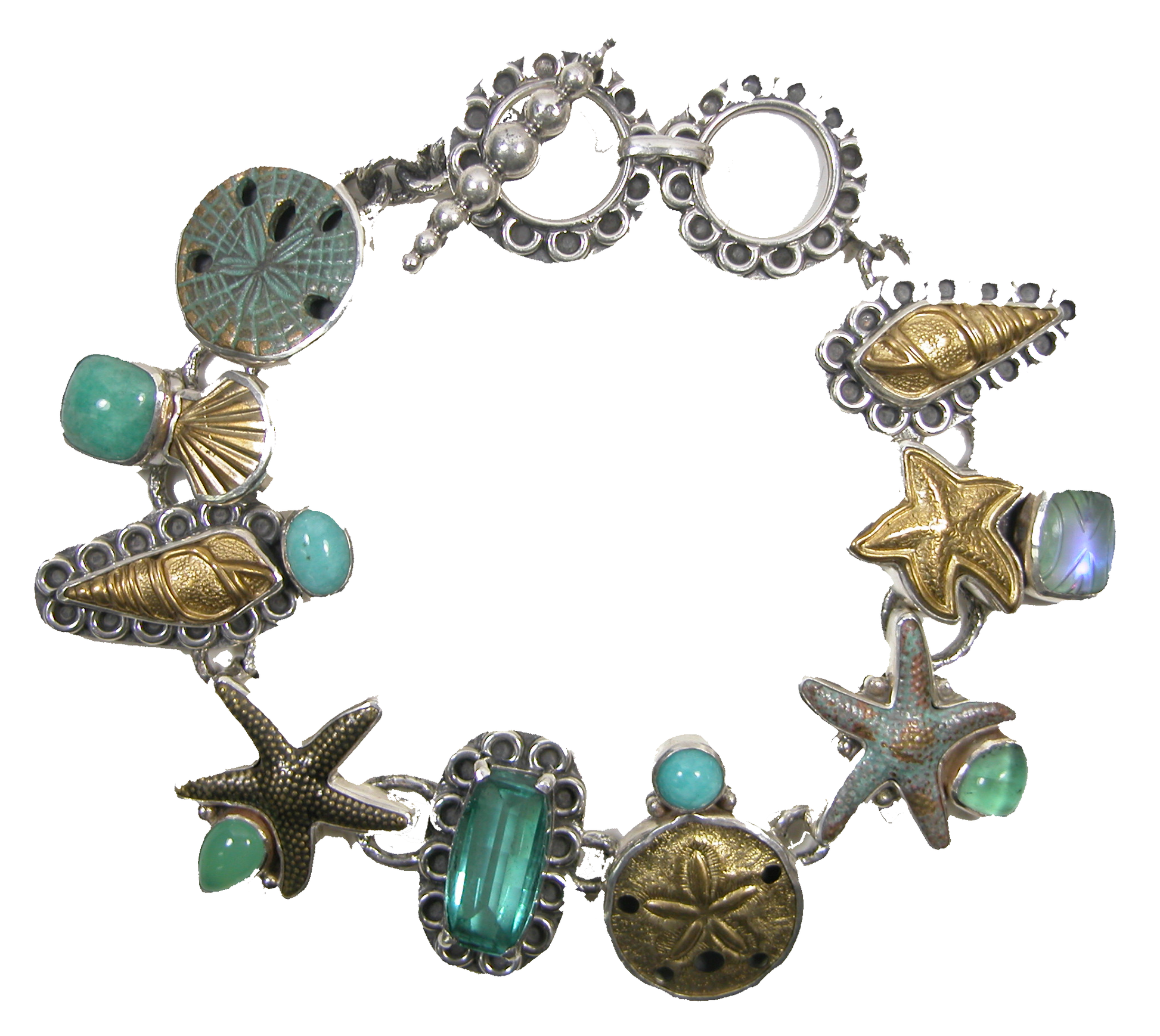 18753 Amazonite, Quartz Seashell Sterling Silver Bracelet