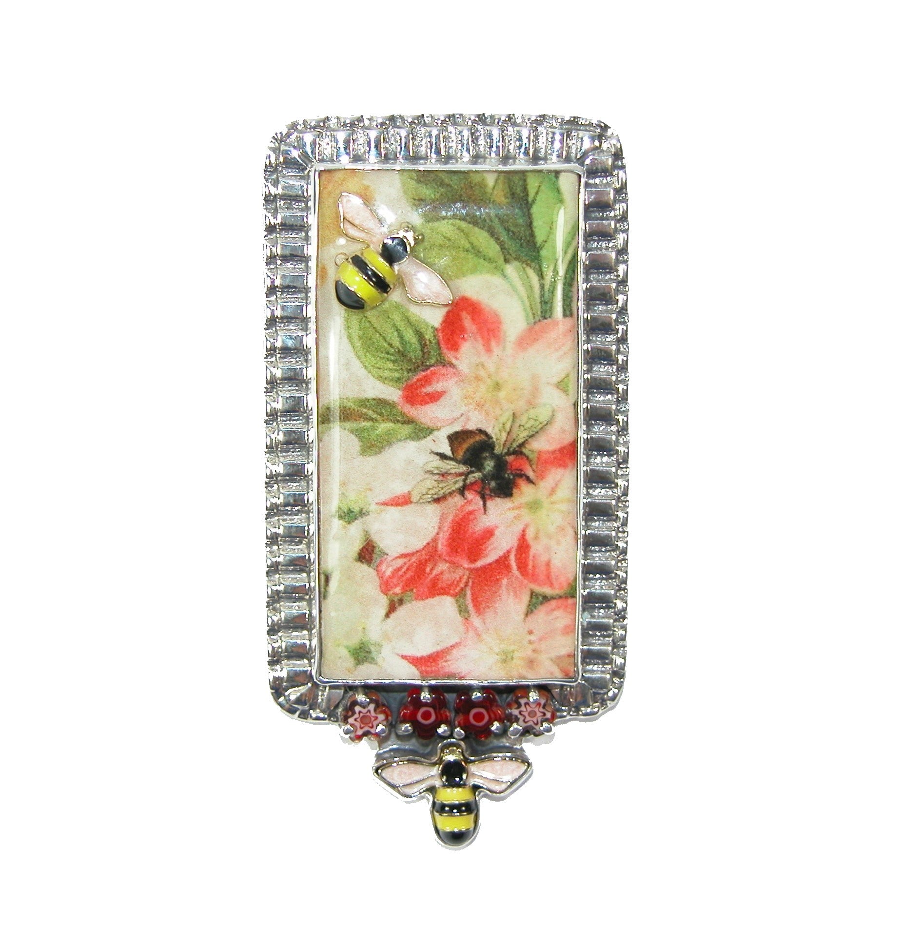 30156 Handmade Tile with Enameled bee Millefiori Sterling Silver Pin and Pendant