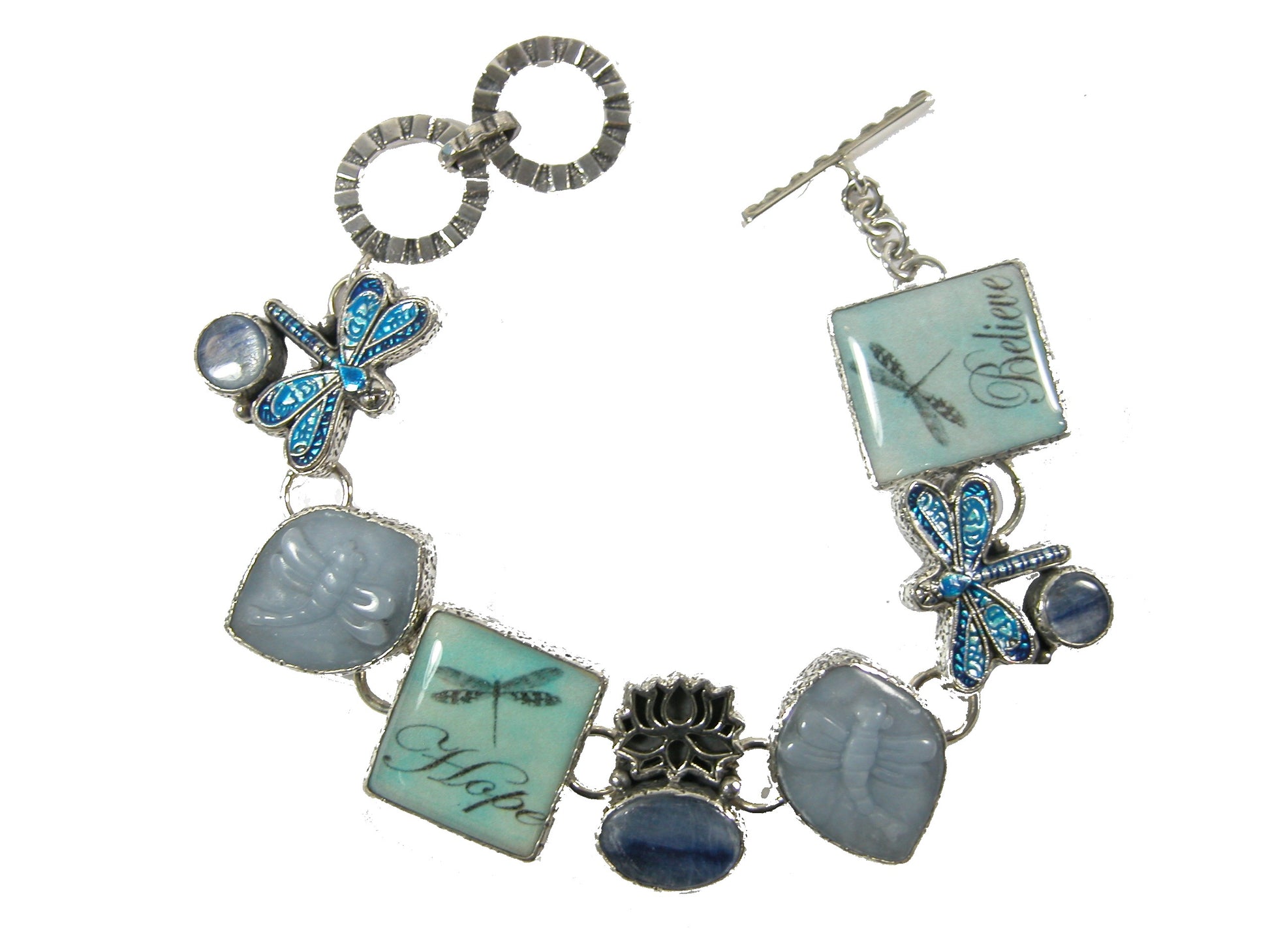 Handmade Tile with Kyanite Enameled Dragonfly Bracelet
