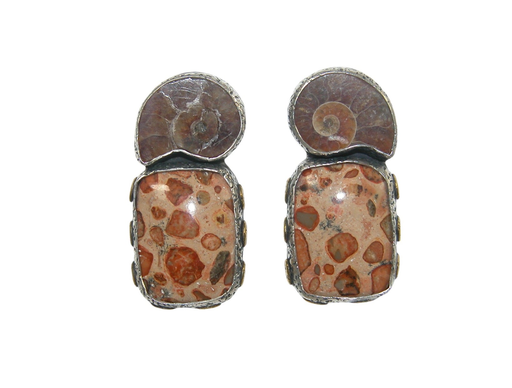 32820 Jasper Ammonite Sterling Silver Earrings