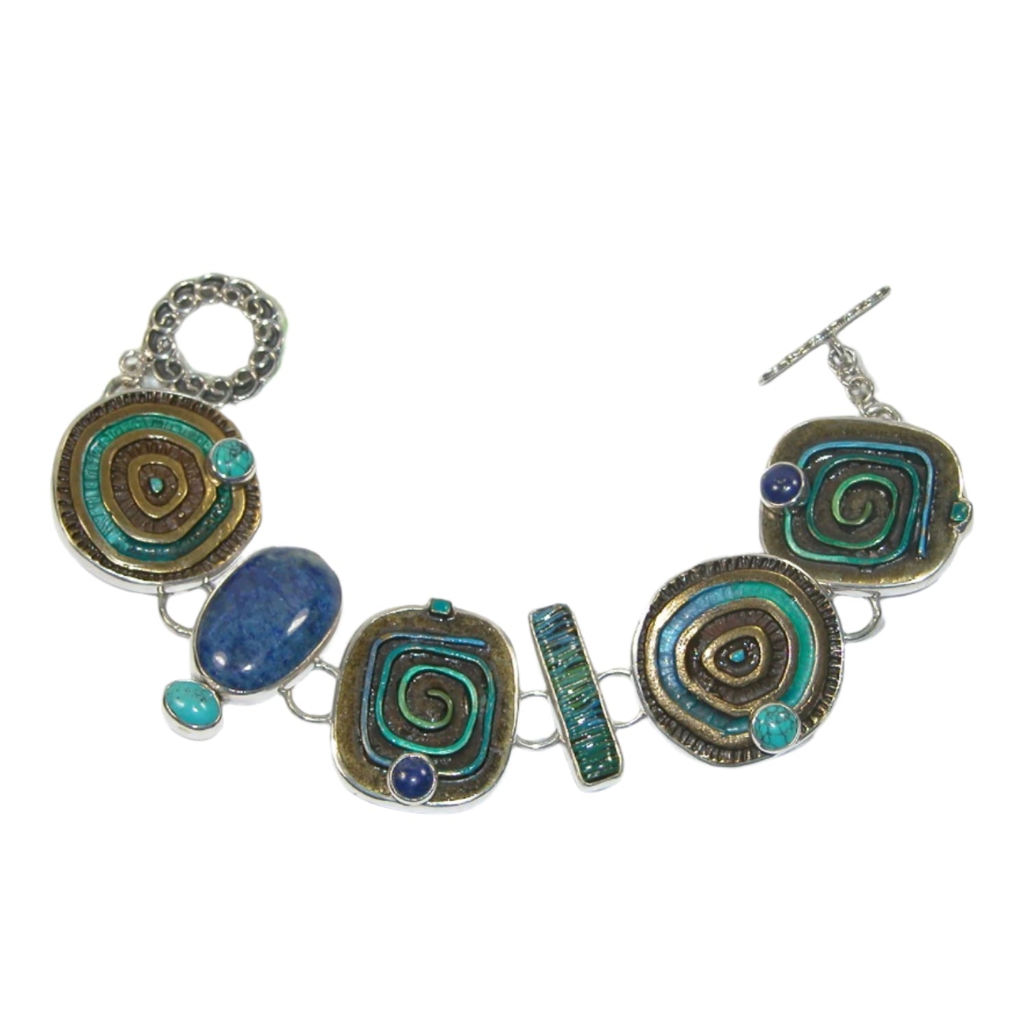33477 Lapis Turquoise Enamel Swirl Sterling Silver Bracelet
