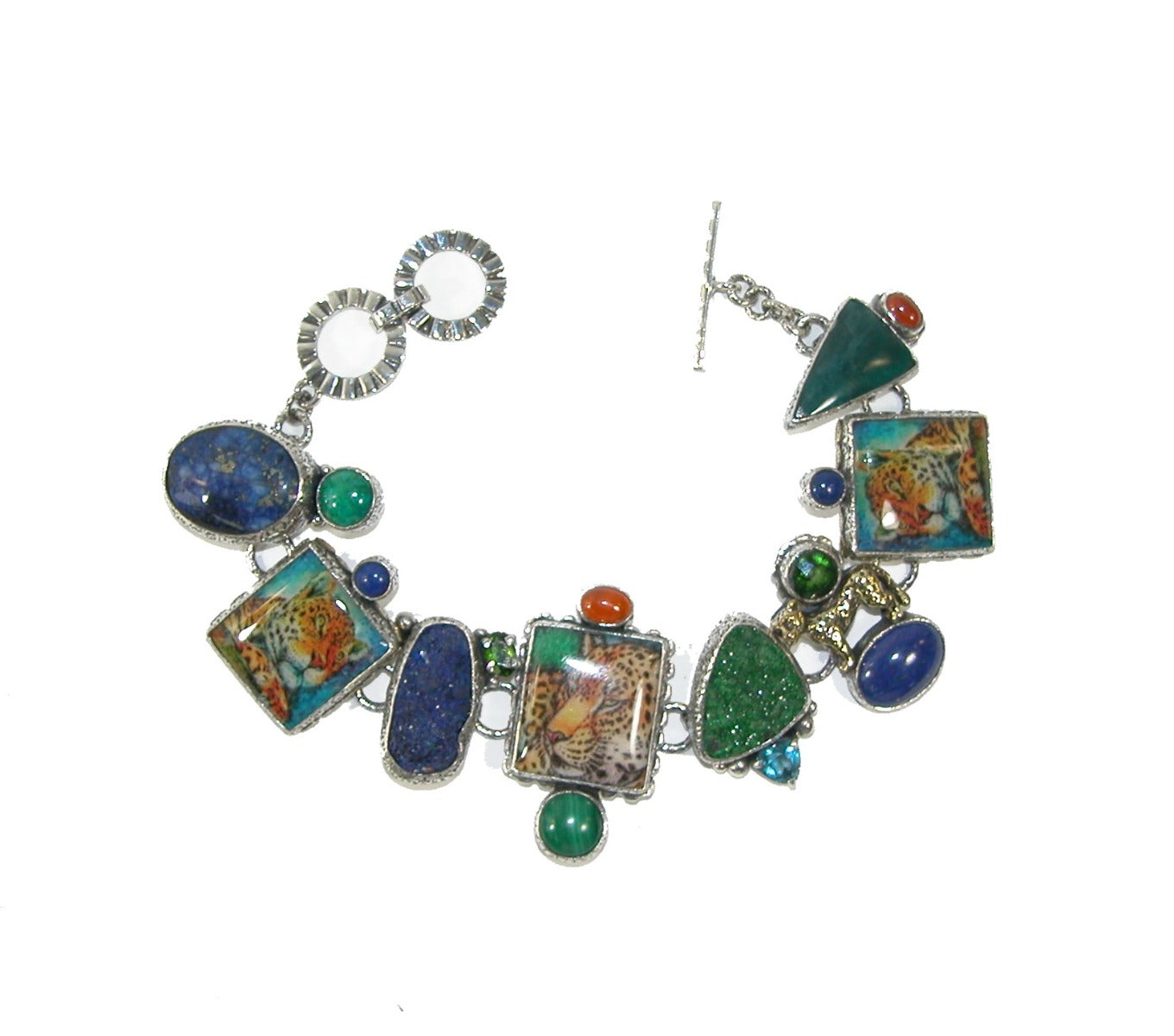 Leopard Tile Malachite Azurite Lapis Hessonite Uvarovite Sterling Silver Bracelet