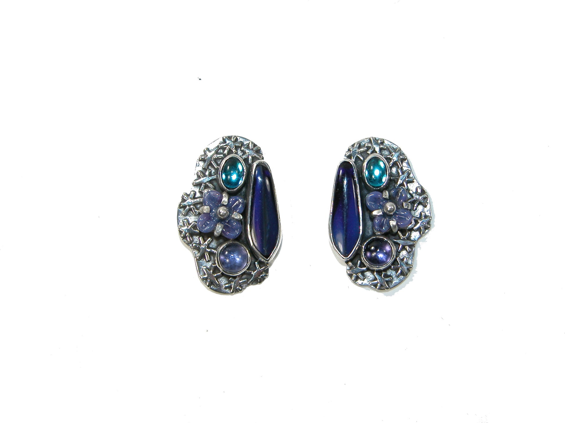Embrace Spring with our earrings Lolite, Vintage Glass, Handmade Glass clad in sterling silver with posts. Can be converted to posts.