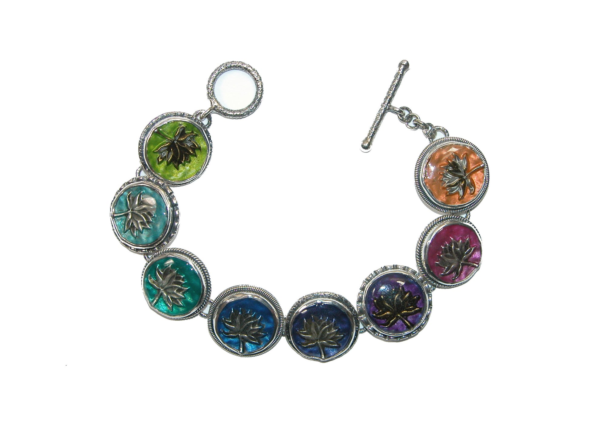 32497 Lotus Multicolor Enamel Sterling Silver Bracelet