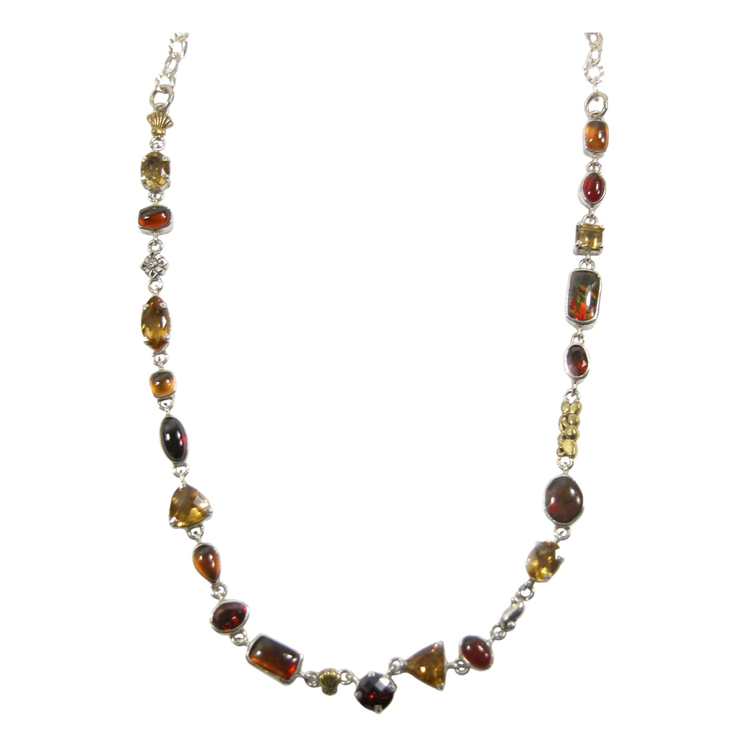 29622 Ammonite, Citrine, Garnet, Hessonite Sterling Silver Necklace