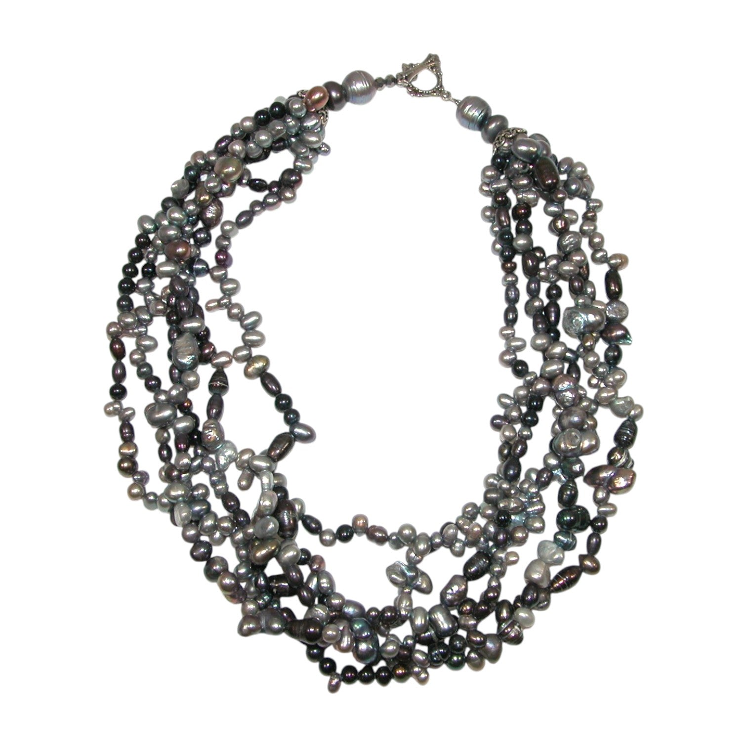10691B Five Strand Purple Freshwater Pearl Sterling Silver Beaded Necklace