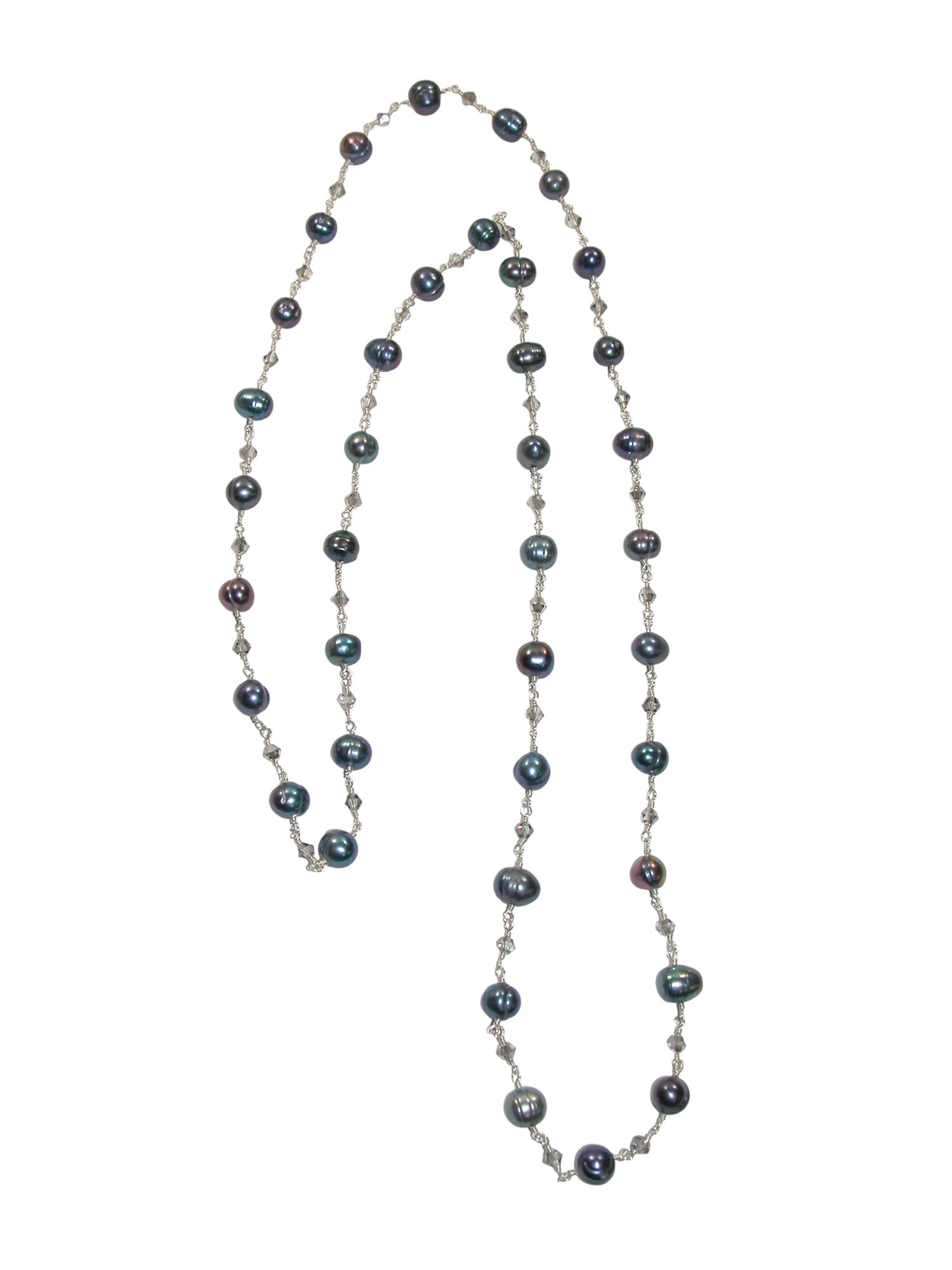 N5099 Peacock Pearl Long Jointed Crystal Necklace
