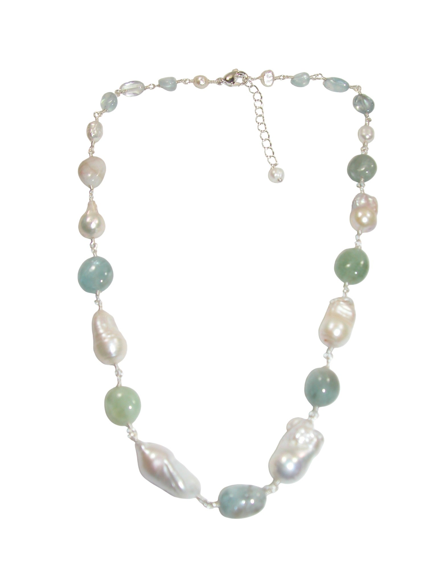 N5491 Aquamarine Pearl Short Jointed Necklace